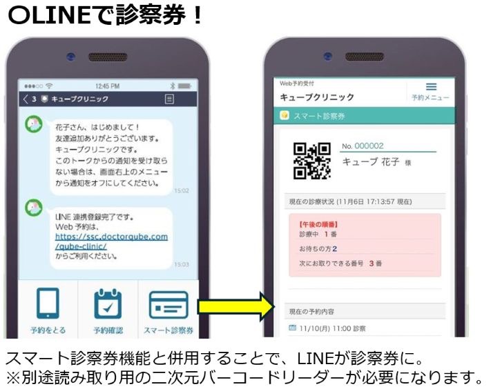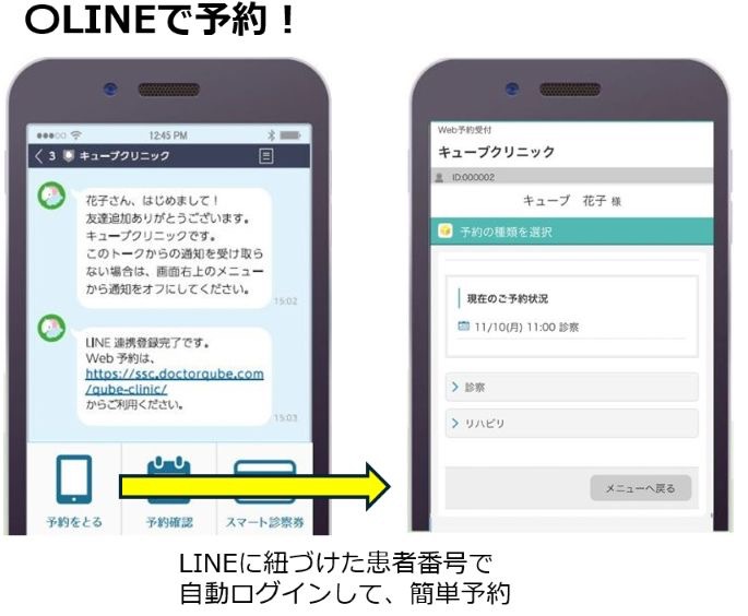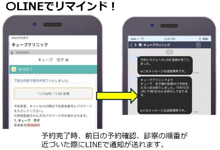 LINEの画面から直接予約できるようになります。予約完了や診察が近づくとLINEに案内が届きます。