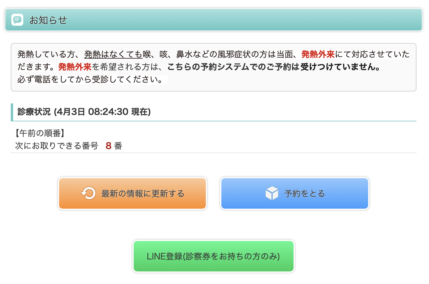 左下に予約ボタンが表示されますので、そこから予約を取ることができるようになります。